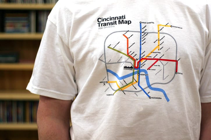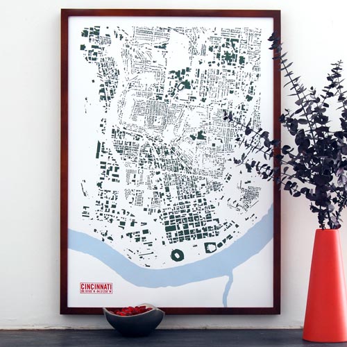 خريطة المبانى بواسطة Cincinnati تظهر المبانى و نهر اوهايو و يمكنك التعرف على المبانى الرئيسية و المعالم المميزة