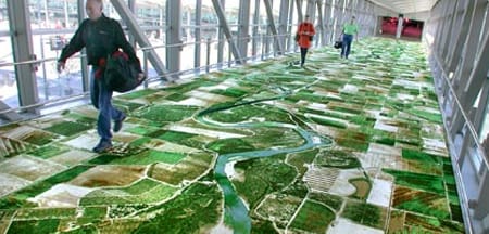 صورة جوية لنهر ساكرامنتو بواسطة الفنان Seyed Alavi معروضة فى المطار الدولى ساكرامنتو