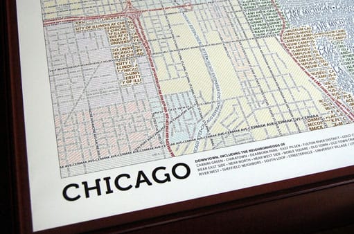 خريطة شيكاغو الطبوغرافية بواطسة شركة Axis تصور بدقة في الشوارع والطرق السريعة والحدائق والأحياء والمناطق الساحلية، والمعالم الطبيعية للمدينة باستخدام الآلاف الكلمات